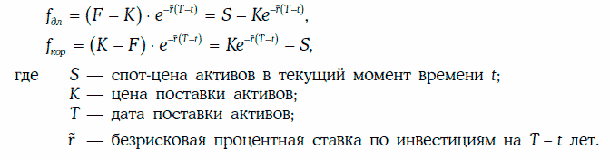Стоимости длинной и короткой позиций по форвардному контракту на активы, не приносящие доходов, определяются равенствами: