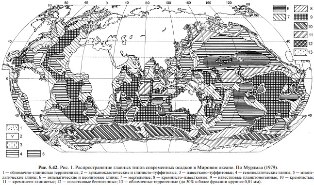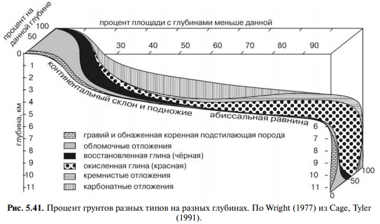На разных глубинах доля осадков различных типов различна (Рис. 5.41).