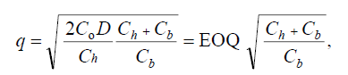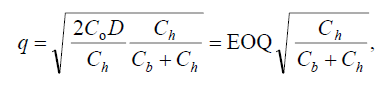Как и в предыдущем случае, применив операцию дифференцирования по частям, можно показать, что оптимальный размер заказа определяется по следующей формуле: