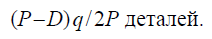 Максимальный уровень запасов равен (Р – D) t1 деталей. Подставив в данное соотношение найденное выражение для t1, получим, что максимальный уровень запасов составляет (Р – D) (q / P) деталей. Таким образом, средний уровень запасов равен
