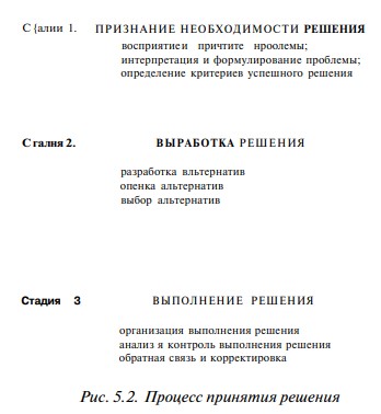 Авторы учебника «Менеджмент: человек, стратегия, организация, процесс» О.С. Виханский и А.И. Наумов предлагают следующую схему процесса принятия решений (см. рис. 5.2)