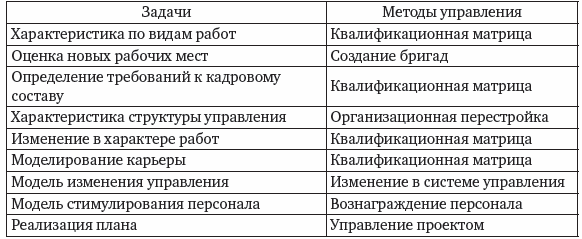 На этом этапе намечаются необходимые изменения в распределении обязанностей, полномочий, знаний для того, чтобы дать персоналу возможность улучшить свою работу. Составляется матрица текущих и измененных видов работ по квалификации, опыту и набору ориентаций.